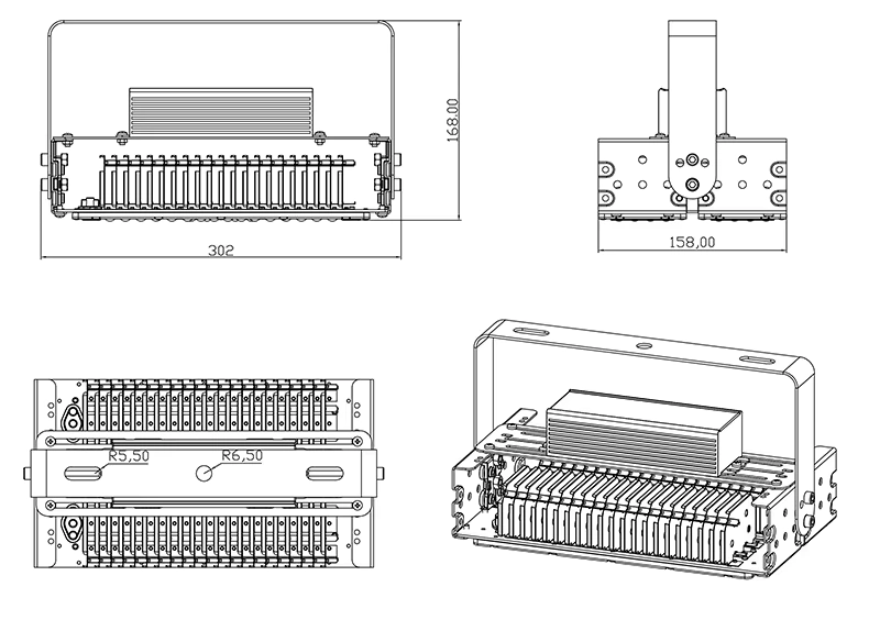 ▪ Corpo em liga de alumínio com alta resistência mecânica e corrosiva, aletas para dissipação integradas ao módulo.
